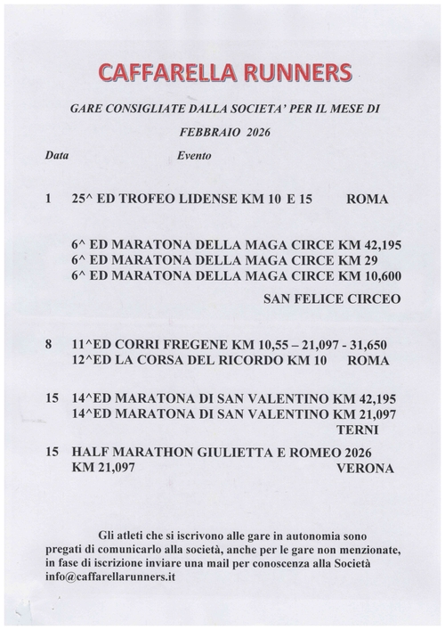 Gare di Febbraio 2026 cosigliate dalla società